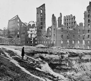 As the Union armies battled south, they set out to destroy what resources the Confederates still held, setting fire to homes and fields, ravaging the countryside and towns and cities. Hungry women in the towns protested in ‘bread riots’ and in Richmond 5,000 broke into shops to steal provisions. The army were called in to restore order, but resistance to the war was mounting as the suffering increased.