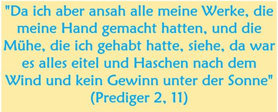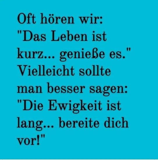 Denken wir daran: dieses Leben, das viele als das einzige und finale behandeln, ist genau genommen nicht unseres, es ist nur ein kurzes Gastspiel bzw. ein Vorspiel. Das eigentliche Leben (für viele leider auch der zweite Tod) spielt sich in der Ewigkeit ab….