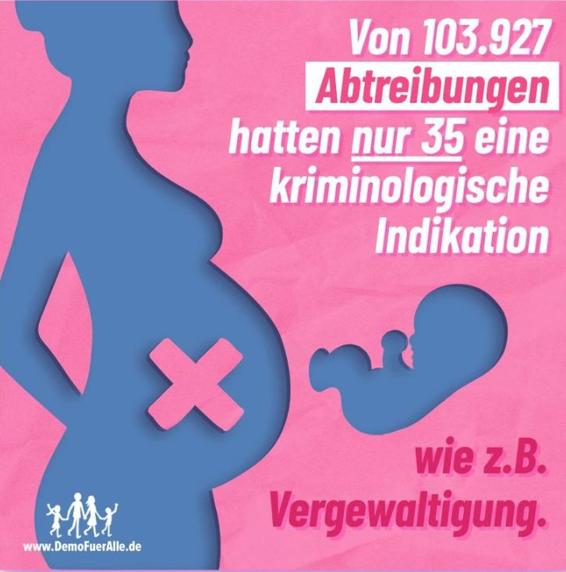 b) Eine sog. «kriminologische Indikation» (wie z.B Vergewaltigung) liegt nur bei ca. 0,03 % aller Abtreibungen vor! Der Rest geschieht fast immer aus Egomanie oder Bequemlichkeit bzw. leider auf Druck oder Zwang durch andere (Partner, Familienmitglieder etc.).