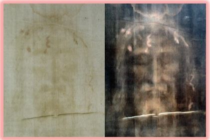 Bild oben: Grabtuch von Turin, mit Jesu Abbild – das vermutlich älteste Foto der Welt. .