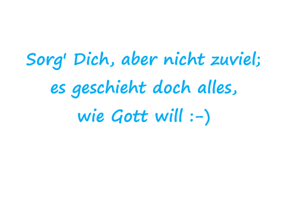 Und wie ich selbst schon oft(!) erfahren habe, ist es NUR Gott, der uns hält und erhält, wie es Ihm und seinem unerforschlichen Ratschluss gefällt! Auch alle Erfolge gibt nur Gott! Soweit sie in SEINEM Plan stehen, natürlich. Wir schreiben so vieles unserem eigenen Willen und unserer Kraft zu, das ist aber Selbsttäuschung bzw. Selbsterhöhung – wir sind seeehr begrenzt und beschränkt! Sowieso durch und durch schwach und fehlerhaft, wenn wir mal ehrlich sind. Und erkennen gar nicht, dass nur Gott alles ermöglicht. Da gilt es, unseren falschen Stolz hinzugeben, Ihm dankbar zu sein, und Ihm allein die Ehre zu geben!