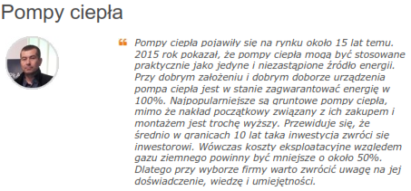 Ogólnie wszystkie urządzenia są dobre, bo działają na podobnych podzespołach, różnią się jedynie designem, formą pobierania energii (z powietrza, wody lub gruntu). Nasza firma bazuje na pompach ciepła bezpośredniego parowania, które mają korzystniejsze parametry wydajności i przede wszystkim dają klientom niskie koszty eksploatacyjne.