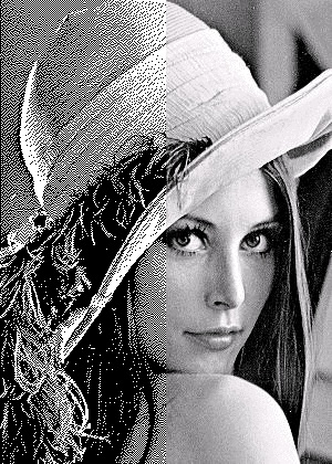 By means of Processing, implement a program to process the file lena, a "dithered" black and white version of the famous Lena image. The image, treated only in the left half, should result similar to that of Figure 9.0