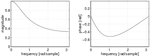 Figure 7.6. Magnitude and phase response of the IIR first-order filter