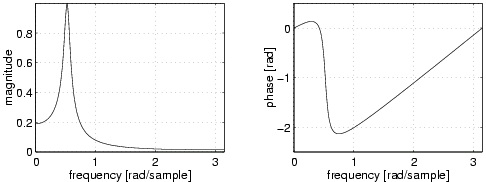 Figure 7.7. Magnitude and phase response of the second-order IIR filter