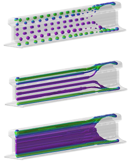 The science of visualization has been split into three themes; information visualization that studies methods for the representation of large-scale collections of often non-numerical information as well as the recommendations for use of graphical techniques to aid in the analysis of data. Scientific visualization, the second theme, was developed from previous often natural and experimental methods of displaying data, which has seen an explosion of users due to the deluge of in-silico experimental data (e.g. supercomputing and high throughput computing results) as well as real experimental capture equipment (e.g. 3D medical scanners, climate sensor data and astrophysical telescopes). Results often mimic reality, for example creating virtual wind-tunnel visualizations, but can be abstract, for example visualizing 6-dimensional tensor components using different geometric shapes (as in Figure 1). Visual analytics is the third theme. This merges both of these fields to focus on the user’s analytical reasoning, which often involves interactive visual interfaces and commonly employs various data-mining techniques as well as combining data across different databases.