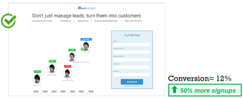 For ‘Lead Management’ PPC campaign, we tested two pages - One with features listed as text and the other one with relevant image