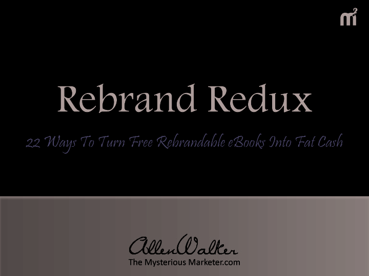 You probably opened this book because you wanted to learn about how to turn the free rebrandable ebooks and reports that you can find online into big fat cash, right?