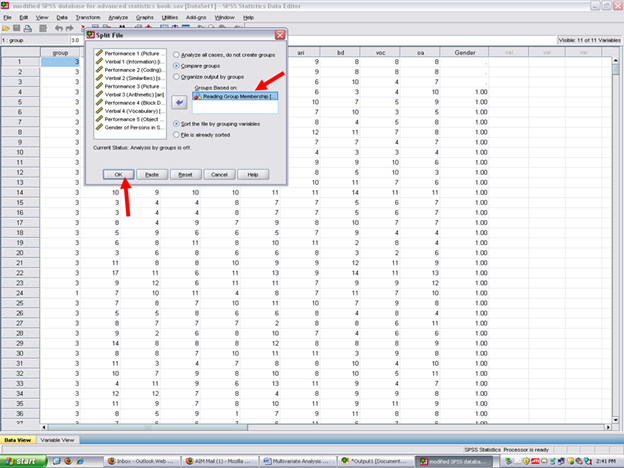 Now all SPSS analyses will be calculated separately for each of the three reading groups.