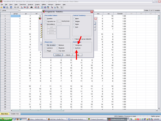 Click on Skewness, Kurtosis, and Continue