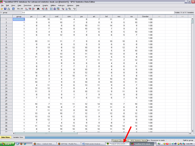 If SPSS does not send you to the Output screen, click on the Output button at the bottom of your screen so that you can view the results of the statistics you just had SPSS calculate for you.