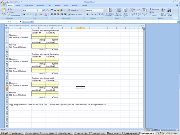 To standardize the kurtosis value so that its value can be constant across datasets and across studies, the following calculation must be made: Take the kurtosis value from the SPSS output and divide it by the Std. error of kurtosis. If the resulting calculation is within -3 to +3, then the kurtosis of the dataset is within the range of normality (Onwuegbuzie & Daniel, 2002). If the resulting calculation is outside of this +/-3 range, the dataset is not normally distributed. Then the kurtosis of the dataset is within the range of normality (Onwuegbuzie & Daniel, 2002). If the resulting calculation is outside of this +/-3 range, the dataset is not normally distributed.