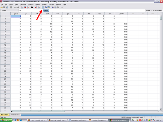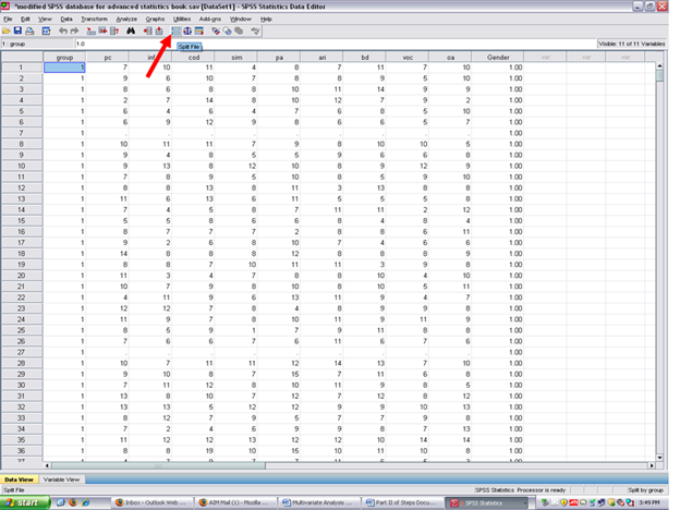 Now, before conducting the MANOVA to answer our research question, this dataset must be put back together. Remember that the dataset is currently split. As you were in the SPSS Output screen, make sure that you go back to the Data screen before continuing.
