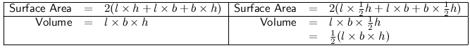 Now, what happens to the surface area if one dimension is multiplied by a constant? For example, how does the surface area change when the height of a rectangular prism is divided by 2?