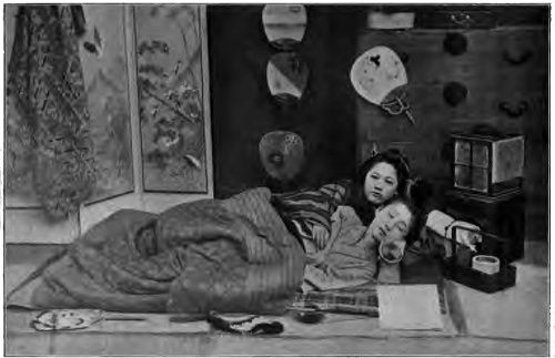 How we laughed as we lay in our blue cage and watched the little ladies preparing for the night! Sleep was practically impossible, owing to the mosquitos and other lively inhabitants of the room and the incessant tap-tap of the little Japanese pipes which, even in her slumbers, a Japanese lady seems to require.