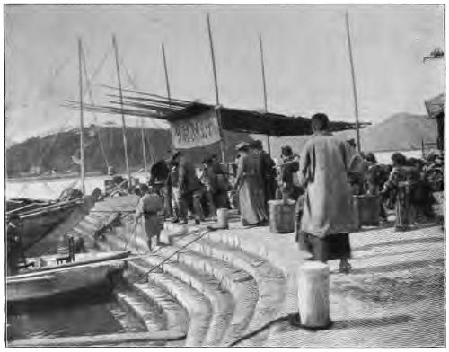 We were glad to be up betimes the next morning, and started off again--all in rickshaws--for a pretty, though hot, ride down to Nagano, where we took the train. The heat in the plains was intense, but fortunately, ice was obtainable at all the stations, and by putting pieces on our heads and in our mouths we managed to keep alive.