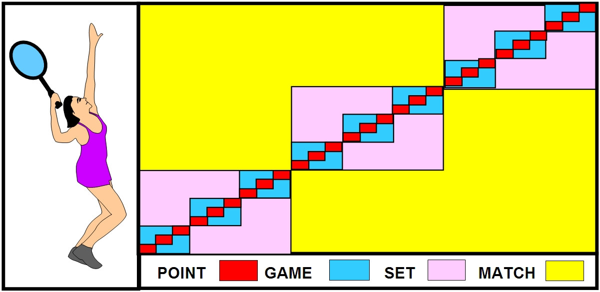 Here, a player has to win points first, then sets and only then a match is won. Each set is like an independent match and have to be won separately and no weightage is given to points won in previous set whatever may be the margin.