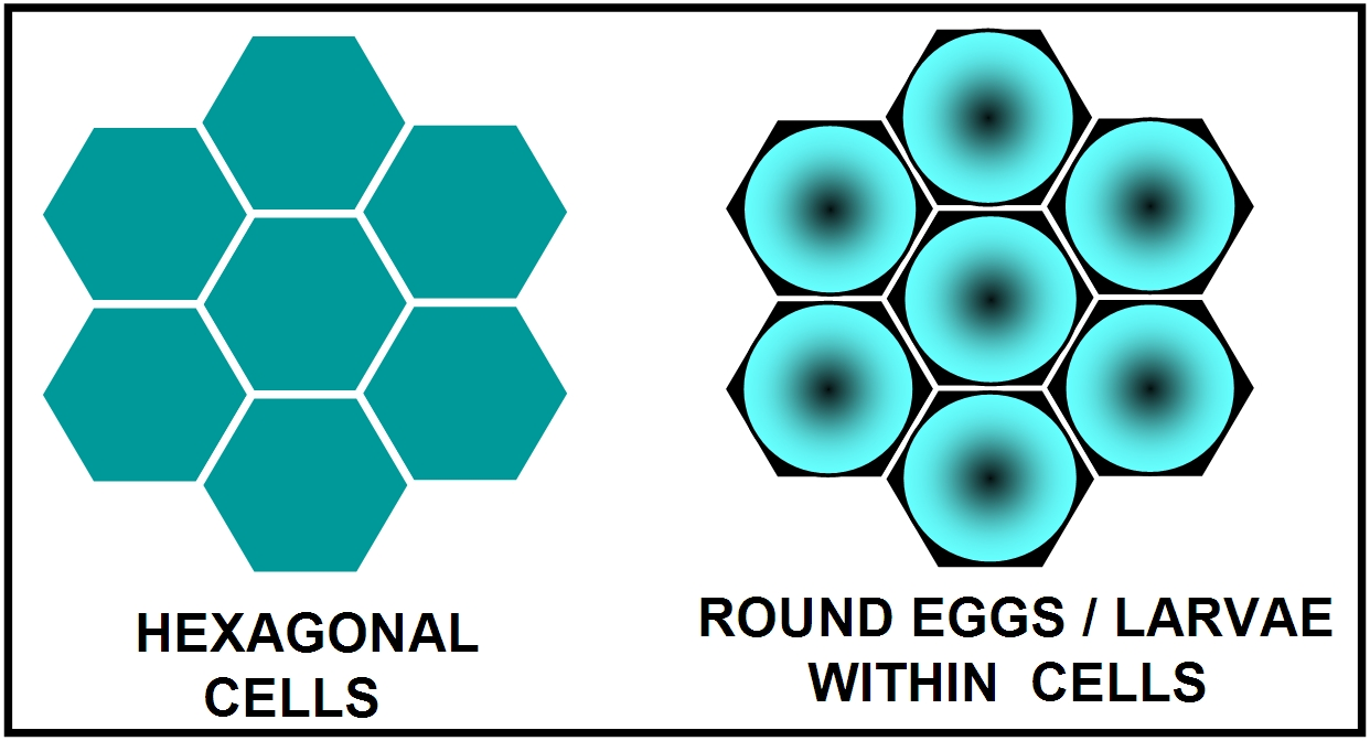 • Round eggs or larvae closely fit in a hexagonal cell and wastage of intra-cellular gaps are minimal.