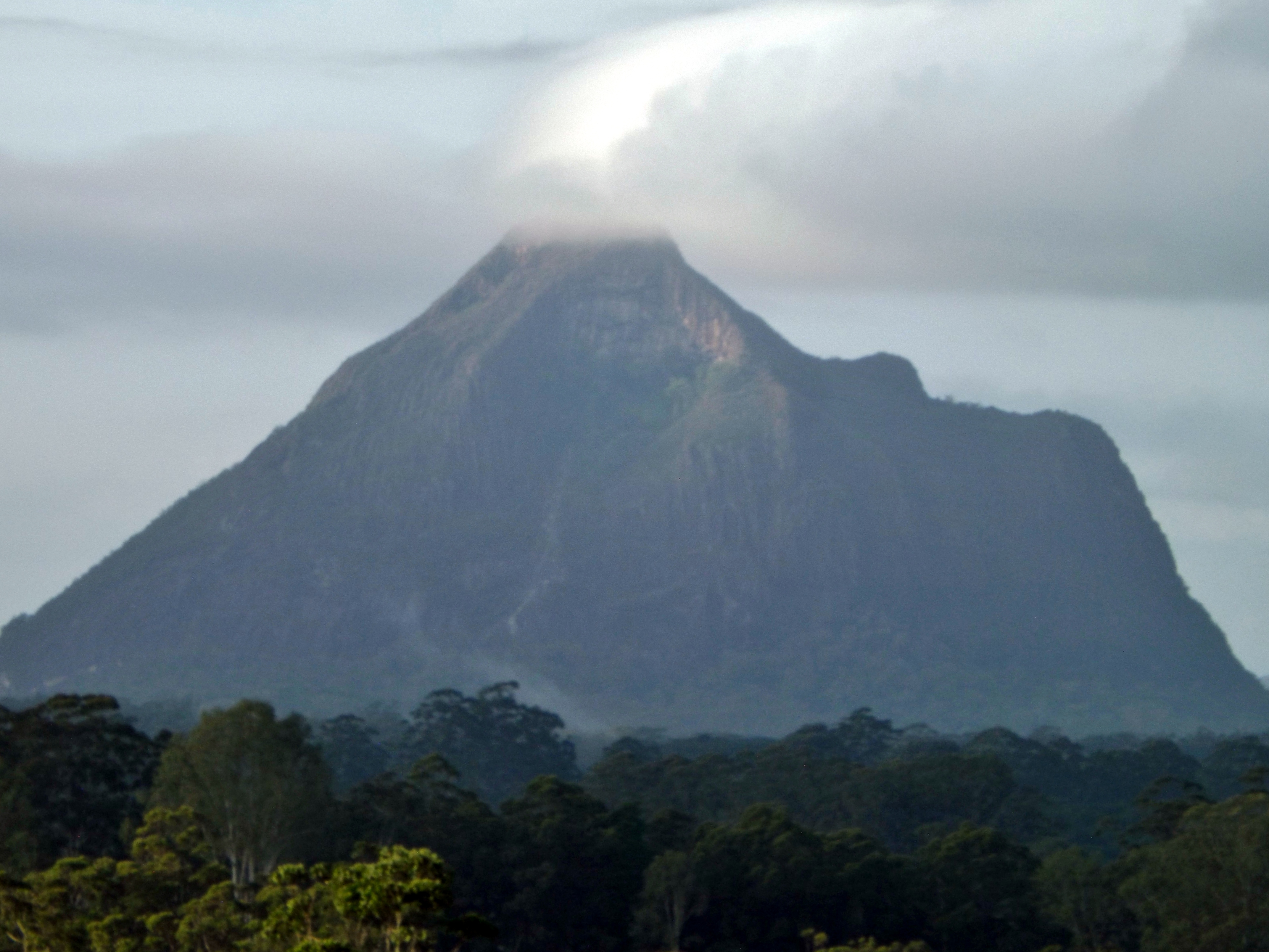 The next day, Monday the 23rd. they all bundled into LP’s 4x4 off-road vehicle, leaving Teewah Beach behind and headed for a turn off, from bitumen onto dirt, leading them to Brownie’s ancestral home, the forest surrounding Mt. Beerwah, mother of Dreamtime folklore.