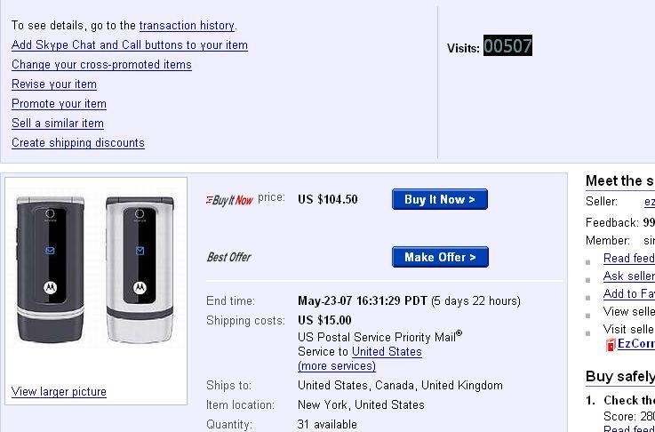Let me give you an example of how Terapeak helped me. In my Ebay Store which is run by my wife and her friend, we were selling a Motorola W375 for about $93 and were making about $15 on each phone. We sold about 400 of these phones in one month on and off Ebay (we found great cell phone suppliers). After doing some research on the competition using Terapeak, we found that a competitor was selling triple the amount of the Motorola W375 than we were and was selling the phone for $104 while we were selling it for $93.
