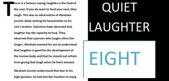 There are secrets in quiet laughter. While we should laugh and enjoy the fun that laughing brings, we also must not over laugh. You do not have to laugh to the extent where you are been compared to a lunatic. Lunatics give weird laughs when they do laugh. Understand that the beauty in laughing is laughing quietly. We are not to rage and hit people while we laugh. If we laugh this way, we lose our pedigree.