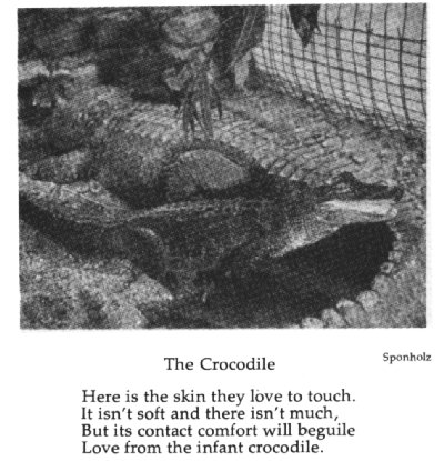 We believe that contact comfort has long served the animal kingdom as a motivating agent for affectional responses. Since at the present time we have no experimental data to substantiate this position, we supply information which must be accepted, if at all, on the basis of face validity: