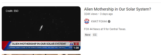 system now. This is better than Omuamua might have been a mothership that passed