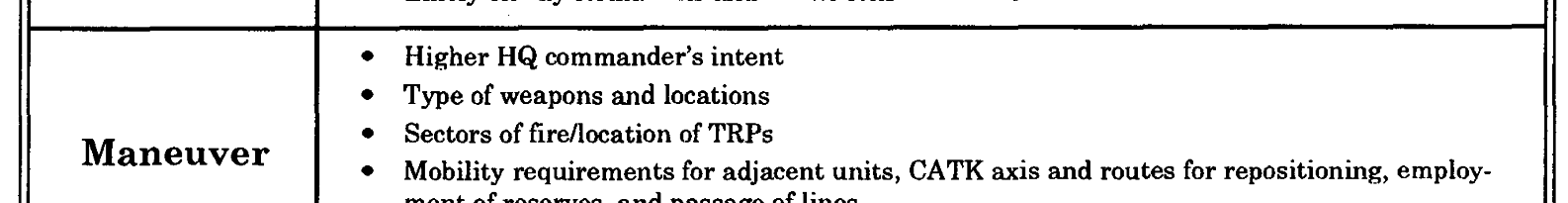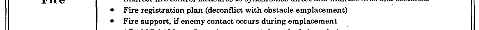 Ability of the unit to cover the reserve relative to the terrain and friendly maneu-obstacle group by fire following execu- ver graphics to support the COA. Normally, tion.