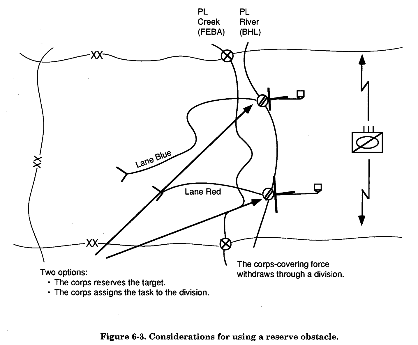 The best spot for an obstacle may not be the commander uses the reserve obstacle to best spot to bring overwhelming combat block the AA, in this case the lane; however, power to bear. When the unit uses the the commander may use reserve obstacles to reserve obstacle to close a lane in a properly achieve any of the four obstacle effects. The planned directed obstacle, the reserve