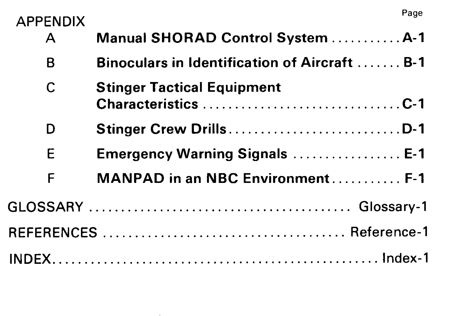 The purpose of this manual is to provide guidance for the Stinger team in support of air defense operations. It is also written to support the training of individuals to function as members of a Stinger team.