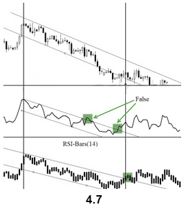 A distinctive feature of RSI-Bars is that this indicator takes into account the volatility of a considered instrument within the selected timeframe - values of RSI-Bars are defined taking into account the price values OPEN/HIGH/LOW/CLOSE (OHLC) and are displayed in the form of chart bars. This allows avoiding of false breakdowns of oscillator trend lines and that’s why traders may use methods of a chart analysis more efficiently in this case.