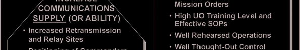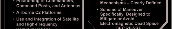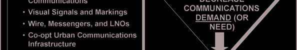 Detailed communications analysis for movement from one AO to another due to the likely density of units operating in the urban environment.