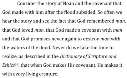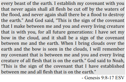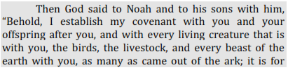 Not only does God establish a covenant with all flesh that inhabits the earth, but He also claims complete ownership of the covenant, “…I establish my covenant…” First and foremost, the covenant God established was conceived within the mind of God and made known to man. Second of all, God made this covenant with all flesh of the earth so that He might be glorified.