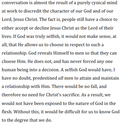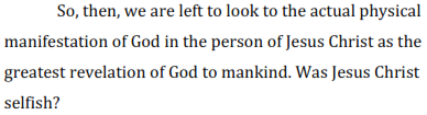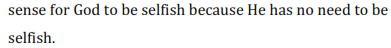 As we previously discussed, the object of God’s love is not God Himself. Because God’s creation naturally praises Him, God has no need to be selfish. This means that all of God’s work naturally benefits His creation. Therefore, the object of God’s love must be contained within His creation.