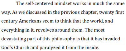 The solution, to the problem of anthropocentrism and to the programmatic discipleship we have grown so accustomed to, lies within a return to true discipleship. We must not redefine the goal of discipleship. We should not work to create a revolutionary new program. It is not even important that we add to the aesthetically pleasing nature of the postmodern, concert-style church auditorium. We must genuinely return to discipleship: not only as it was with Jesus and His disciples, but as it was when the Spirit of God taught Cain that he must rule over sin.25 Billy Graham once said that it was his goal to take the Gospel back 2,000 years, or to the time of Jesus Christ’s public ministry. Our goal should be to take the Gospel back much further than that.