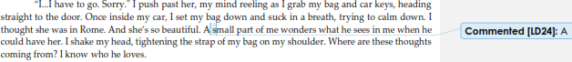 Gavin’s hand closes over my shoulder and he pulls me back toward him so my eyes meet his. He gazes down at me and immediately he gasps, leaning forward, cupping my cheeks in his hands, caressing them. I can feel his heart through his shirt, beating a steady rhythm. In this moment, he’s what I lean into.