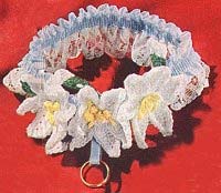 Yellow. Milwards Steel Crochet Hooks No. 7 and 10. A bridal garter.
