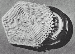 Materials: Clark's O.N.T. (5 balls) or J. & P. Coats (3 balls) Mercerized Crochet, size 50, color 9 Yellow. Milward's steel crochet hook No. 8 or 9.