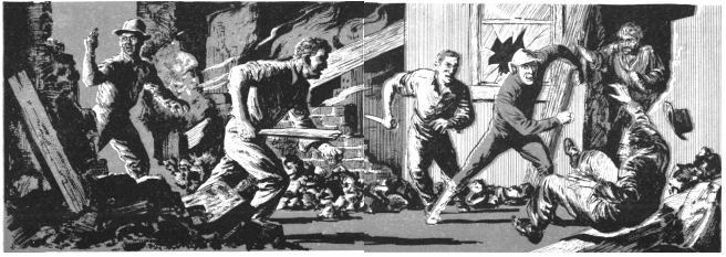 The lights, if they came, would mean his death. A mob, even a small mob like this one, was a mindless animal. Wales, floundering amid the dark legs, kept his head. He shouted loudly,