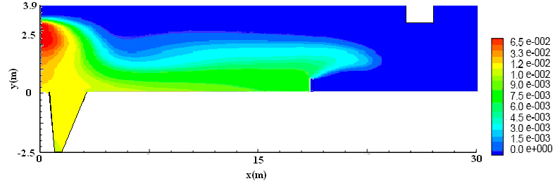 5. Baffling inlet arrangement succeeded in controlling kinetic energy decay.