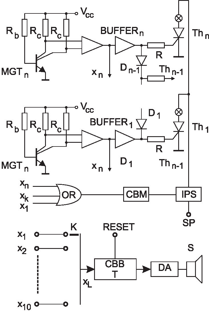 ,,K” switch , then the output signal XL (L=1,2,…,10) commands the bistable of T type which