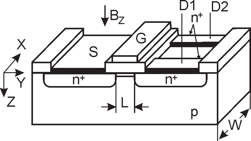 Fig. 2.1. Double-drain MOSFET magnetotransistor