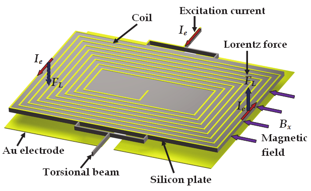 excitation current. A Lorentz force is generated due to the interaction of the current with a