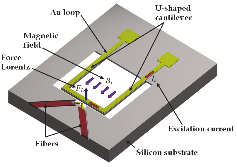 magnetic field parallel to the length of the U-shaped cantilever. This force causes a bending