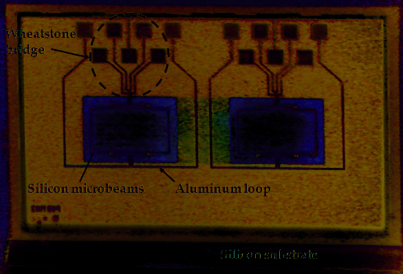 microbeams. The microsensor uses optical detection for measuring the deflections of the
