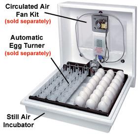 and time. With so many more folks wanting to hatch just a few eggs or hundreds, electricity and finely calibrated thermometers and hygrometers helps a lot.