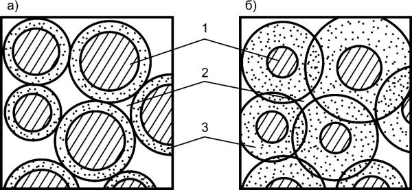 1-not fully hydrated grain of cement; 2-capillary pores; 3-cement hydrate gel