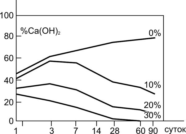 Fig.3.7. Change of capillary porosity in cement paste (stone) in the conditions of