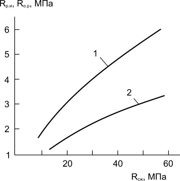 strength Rfl (curve 1), tensile strength Rtn (curve 2)
