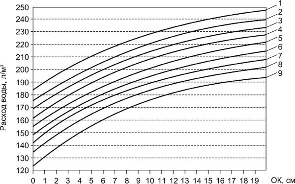 1 – Sand (Fineness modulus is equal 3); 2-9 – Granite crushed stone (Particle